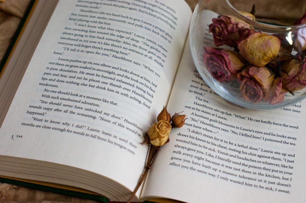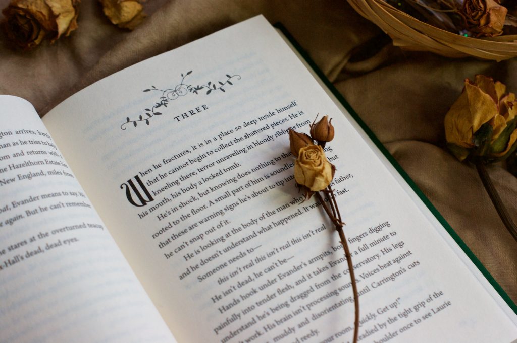 Как уже упоминала, «Поместье Хейзелторн» – это жанр ботанических ужасов, возрастная аудитория этой книги такая же, как и у «Леса», главным героям по семнадцать, и это тоже история двух мальчиков. Но здесь главенствует не лес (за такие слова он придёт сегодня ночью меня наказывать), а старинное поместье, на территории которого находится огромное количество садов. И где-то в них таится что-то магическое.