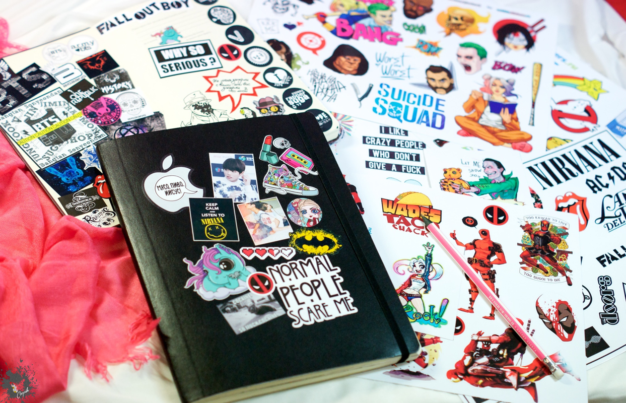 Можно проследить как со временем усугублялась моя стикерная болезнь по тому, как на обложке постепенно добавлялись все новые и новые стикеры 🙂