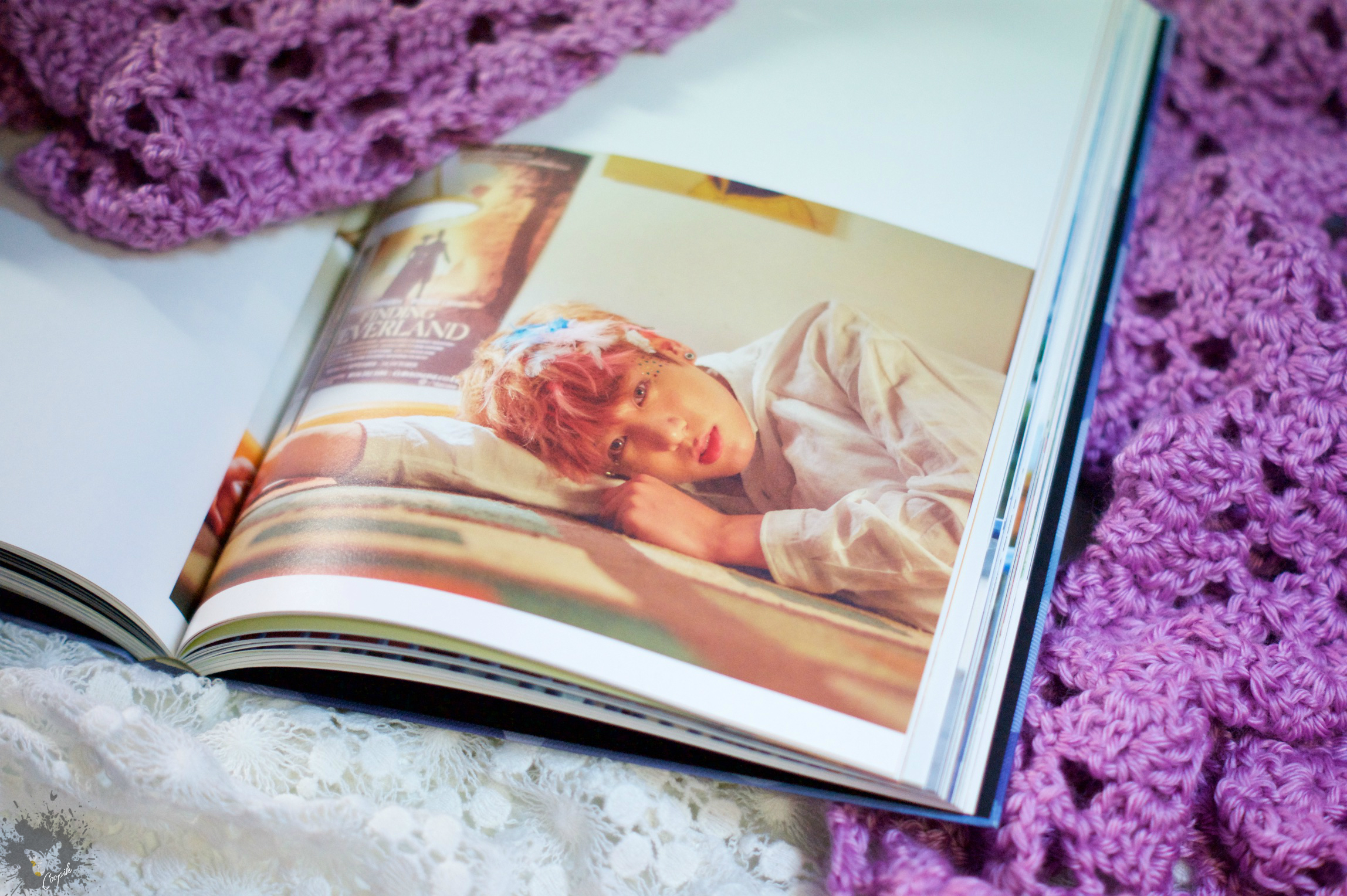 Честно говоря, после фотосессий к муз.альбомам за 2016 год, вот этот малыш был словно глотком свежего воздуха. Не поймите неправильно, мне нравилась фотосессия к студийнику WINGS, который вышел в октябре, но сами фото были там настолько мелкими, что по сути лучшие кадры из той фотосессии, на удивление, нам BigHit предоставил просто так через Фейсбук еще до выхода самого альбома в качестве дразнилок. Это, наверное, впервые было такое, чтобы тизеры оказались лучше готового варианта. Но вот с этим переизданием они не прогадали! Оно вышло снова в двух вариантах — мятный и розовый, и мне настолько сильно полюбились фото из мятного, что я очень долгое время просто везде таскала с собой этот альбом и каждый раз пролистывая его, нереально кайфовала от фотографий. И точно так же, как и с розовой версией HYYH pt2, этот у меня есть в двух экземплярах, в одном из которых я могу себе позволить делать какие-то творческие пометки.
