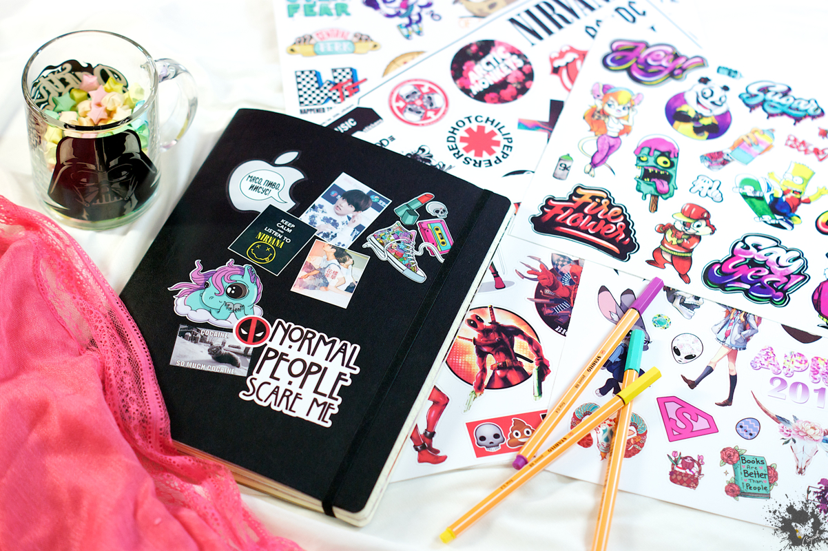 Можно проследить как со временем усугублялась моя стикерная болезнь по тому, как на обложке постепенно добавлялись все новые и новые стикеры 🙂